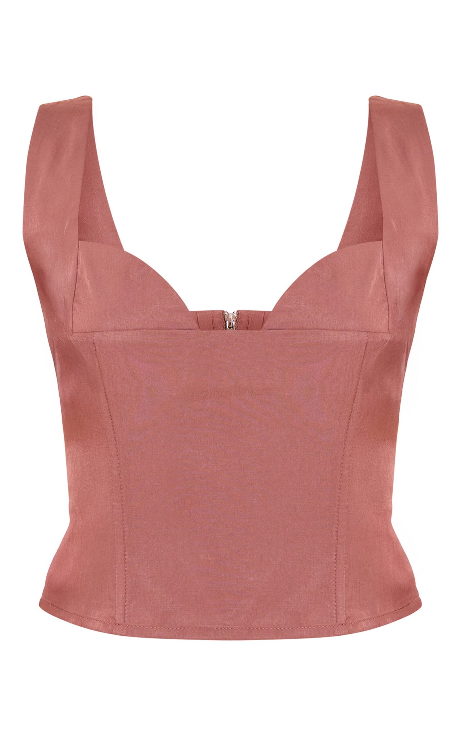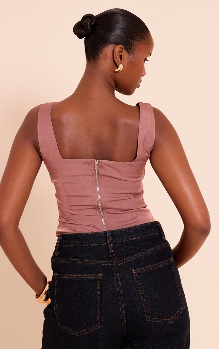 Elevate your evening style with the mauve cup detail boned matte satin corset. Made from a mauve matte satin fabric, it features cup detailing and structured boning for a flattering fit. Pair with a satin skirt and heels for a luxurious co-ord moment.