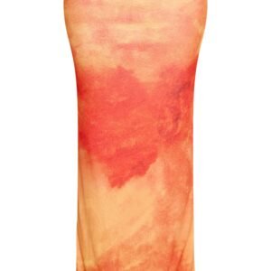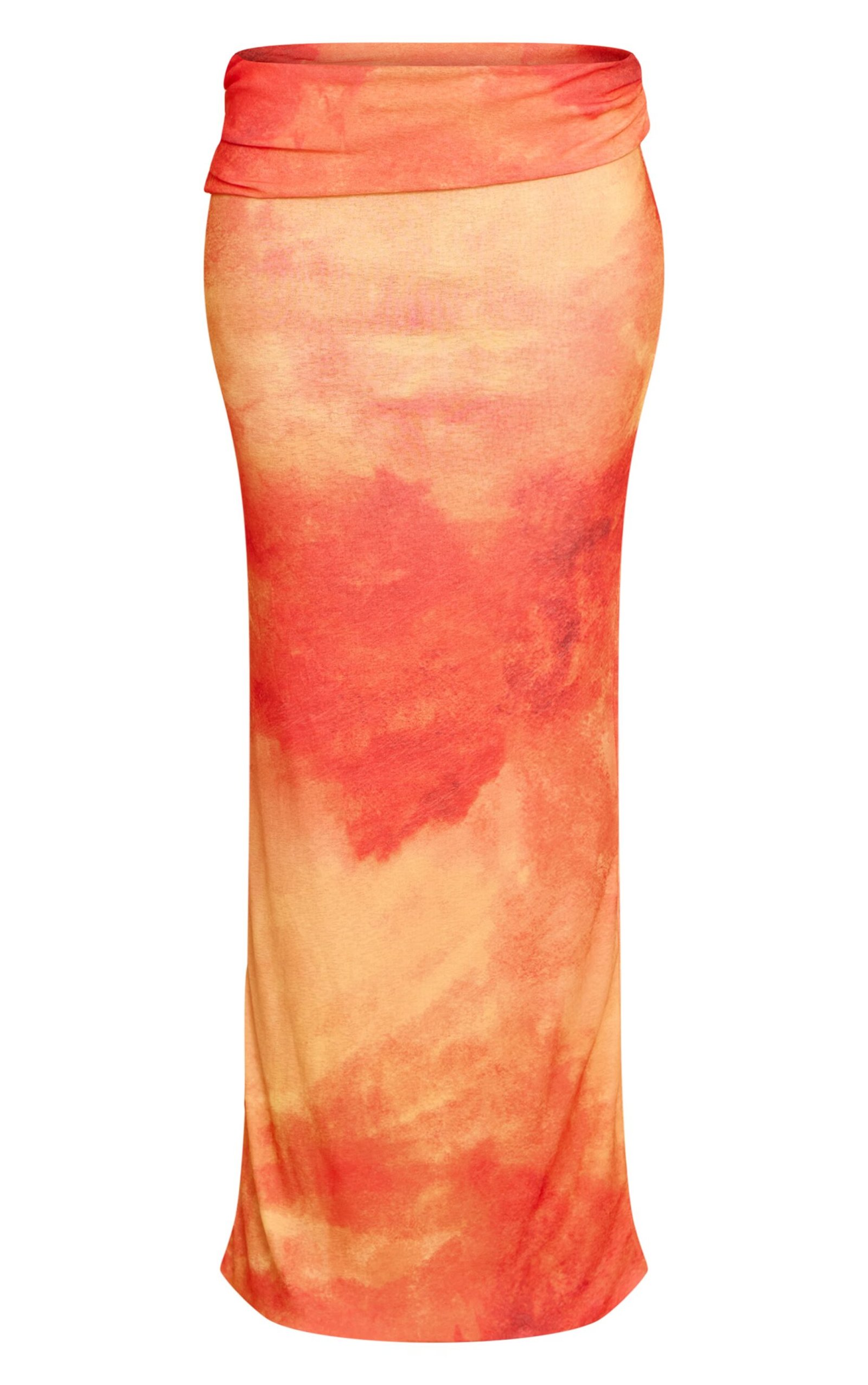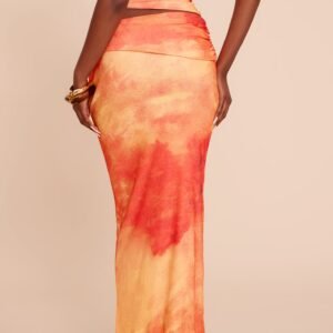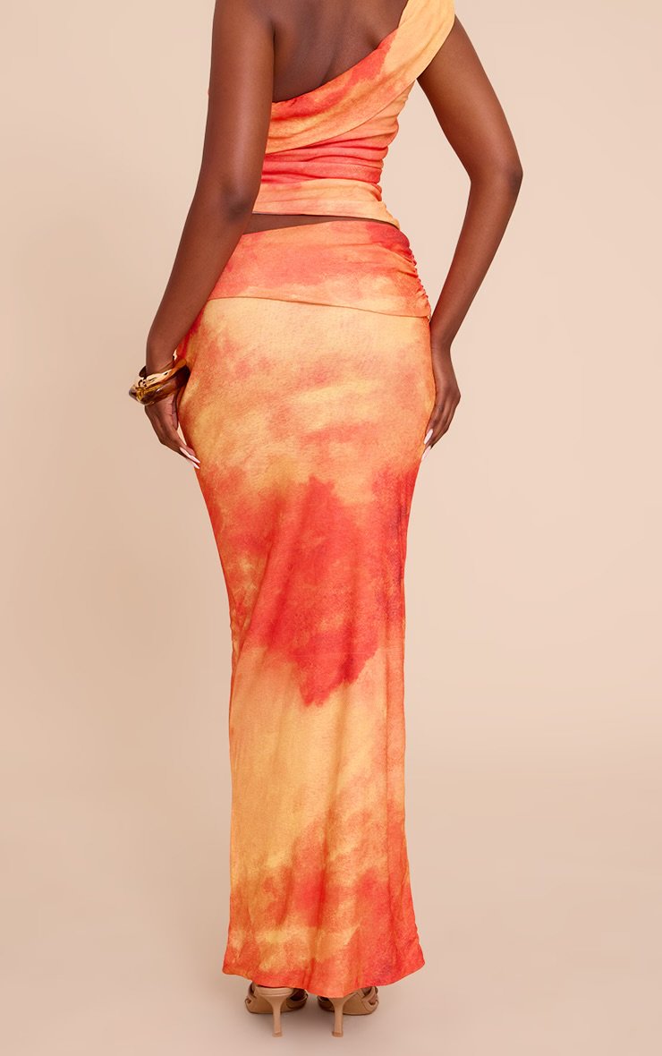 ORANGE ABSTRACT PRINT ONION SKIN LOW WAIST MAXI SKIRT