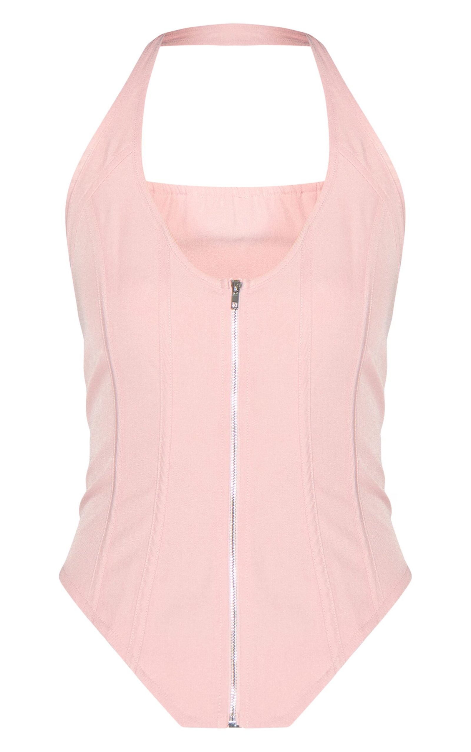 Get ready to turn heads with this pale pink boned dip hem corset. Designed in a pale pink hue material with a structured boning design and a flattering dip hem finish. Team this corset with a pair of shorts and some court heels for a standout finish.